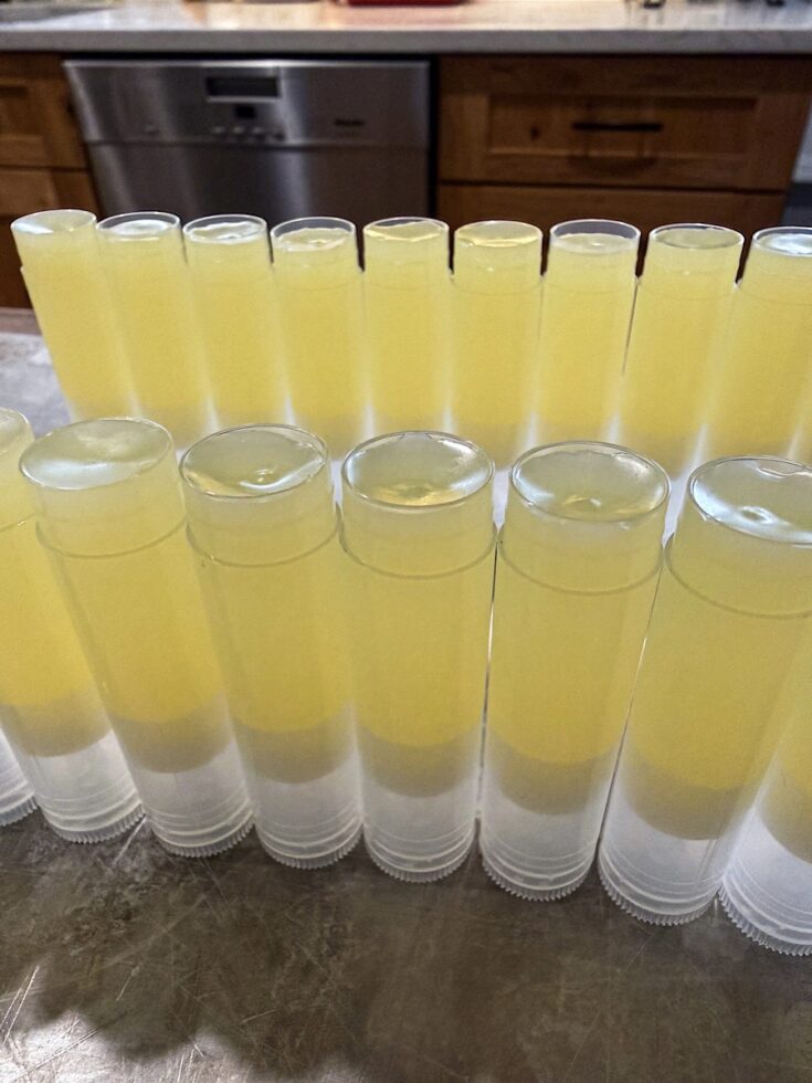 I love to add in beeswax to the chapstick too, because it firms it up and locks in the moisture all day long–truly a game changer when I started adding this in!