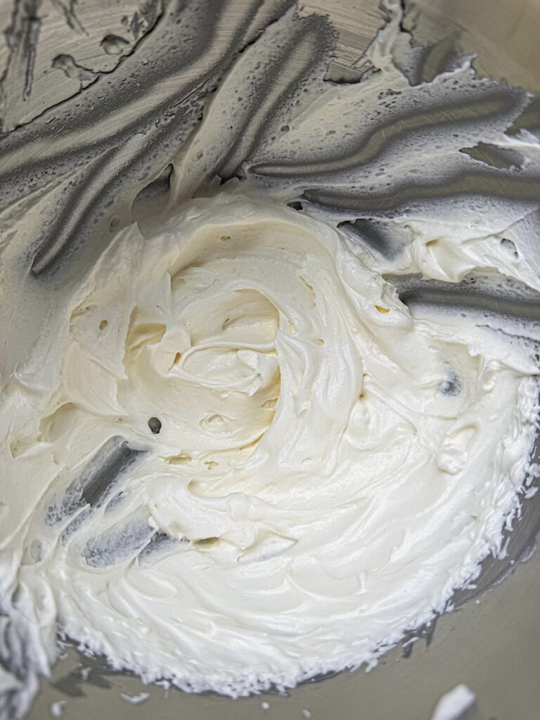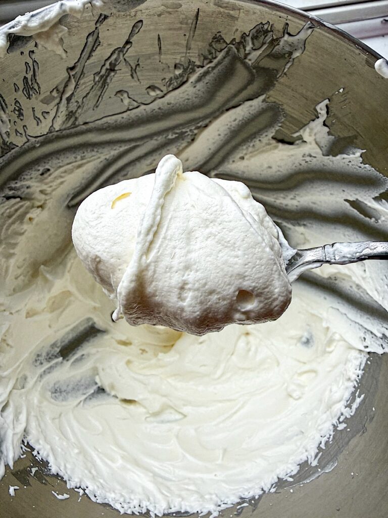 Step three is allowing the mixture to firm up then adding it to a mixer with a whisk attachment. Whisk on high for 5-7 minutes until it resembles whipped cream.