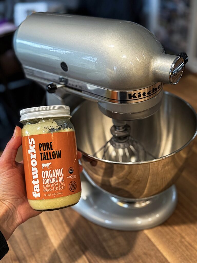 I’m eliminating the rendering part and just having you purchase a grass fed beef tallow already rendered and purified from a jar. That’s step one!